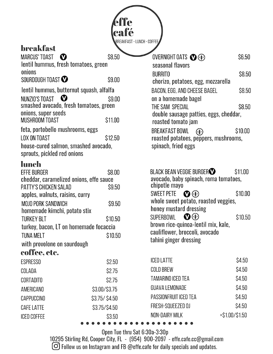 Welcome to Effe Cafe, a delightful dining spot perfectly nestled at 10295 Stirling Rd, Cooper City. This charming cafe has earned a reputation for its fresh, homemade meals that bring a sense of comfort and satisfaction. The menu is a treasure trove of options, catering to breakfast and lunch enthusiasts alike.